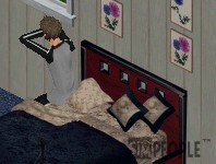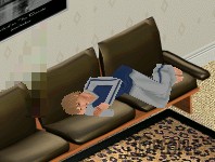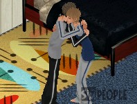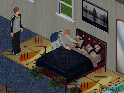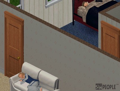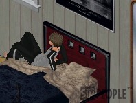 同じベットで寝られない状態なので阿部は床で倒れてしまいました。
