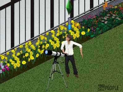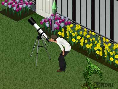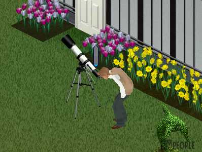 仕事から戻った阿部が早速設置した望遠鏡覗いてました。