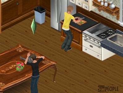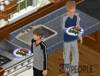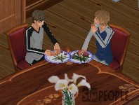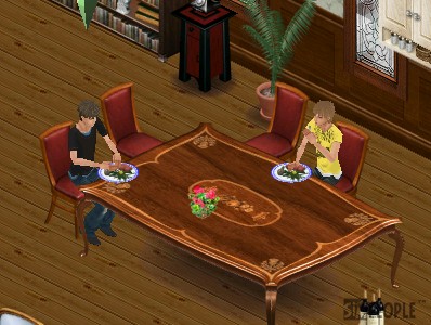 料理が出来上がって仲良く食事。。。なんでそんな離れて食ってんの?